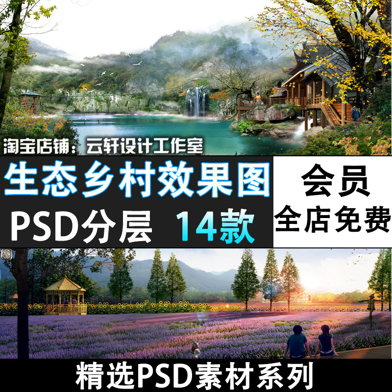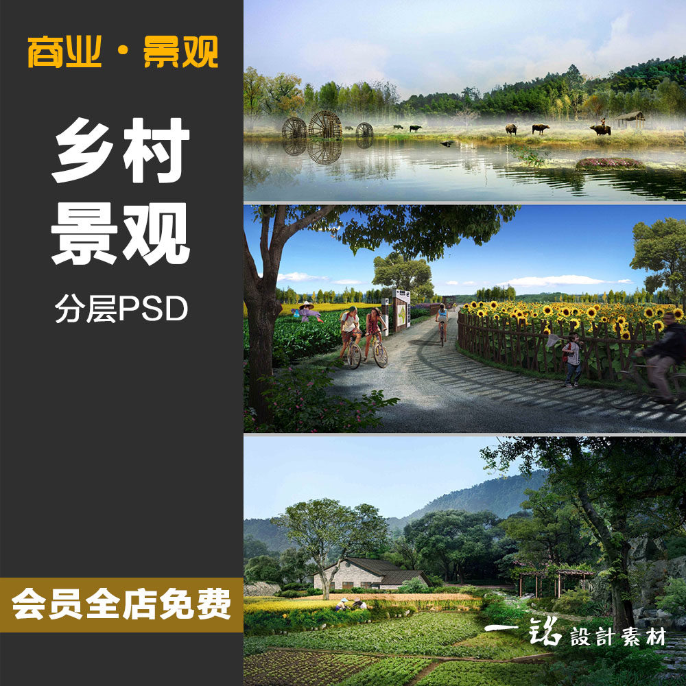 美麗鄉(xiāng)村園林景觀改造新農(nóng)村設(shè)計(jì)方案效果圖PSD分層ps素材文件