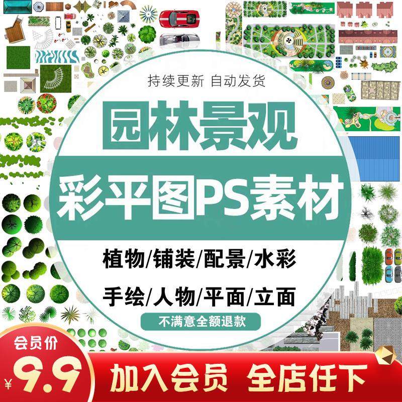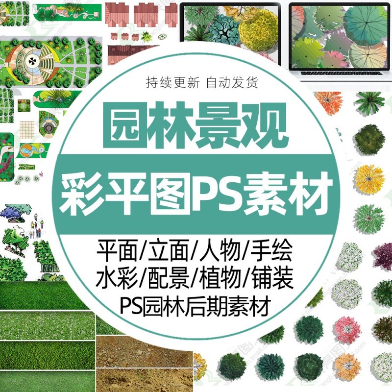 園林景觀彩平圖PSD素材植物手繪輔裝PS后期立面平面圖設(shè)計(jì)效果圖