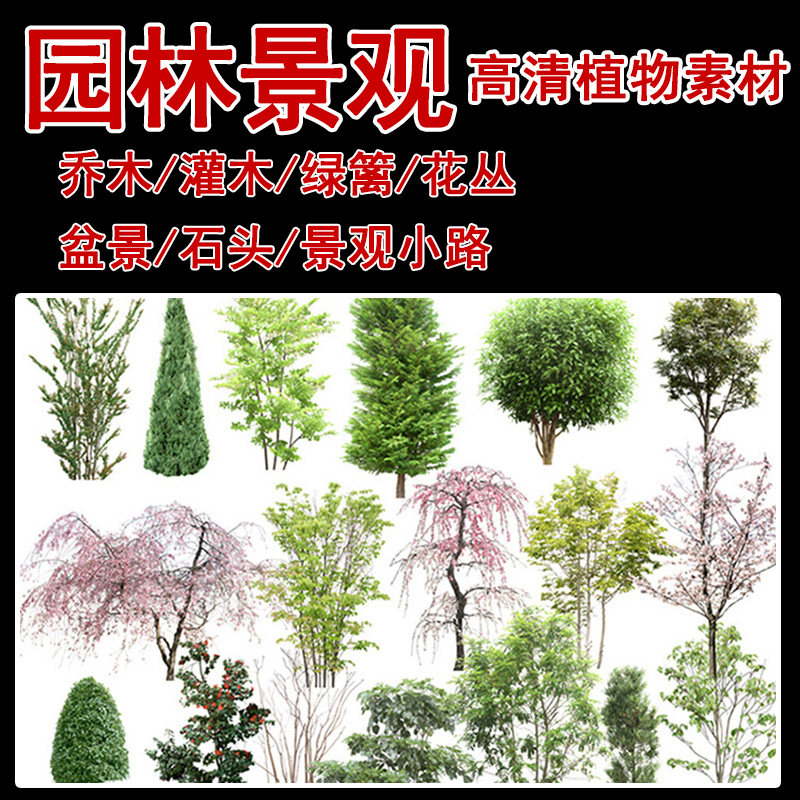 建筑景觀園林效果圖植物PSD分層素材源文件PS高清后期素材圖片庫