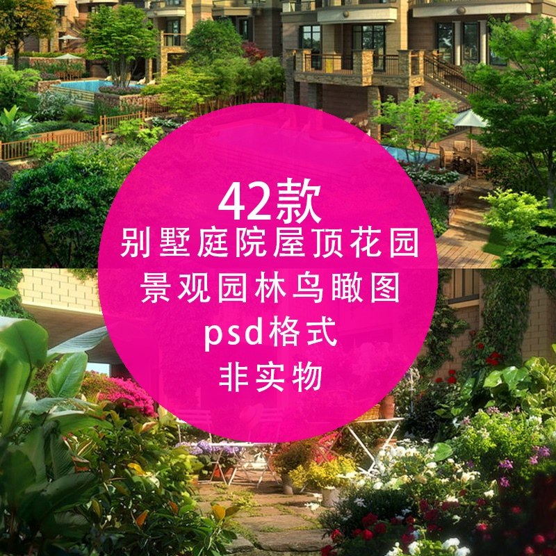 別墅庭院 屋頂花園設(shè)計(jì) psd效果圖PS后期分層素材 景觀園林鳥瞰圖