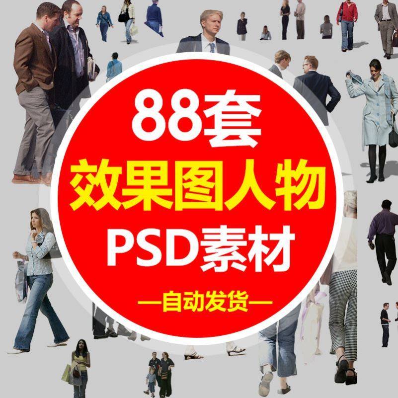建筑景觀園林效果圖人物PSD分層素材源文件PS高清后期素材圖片庫