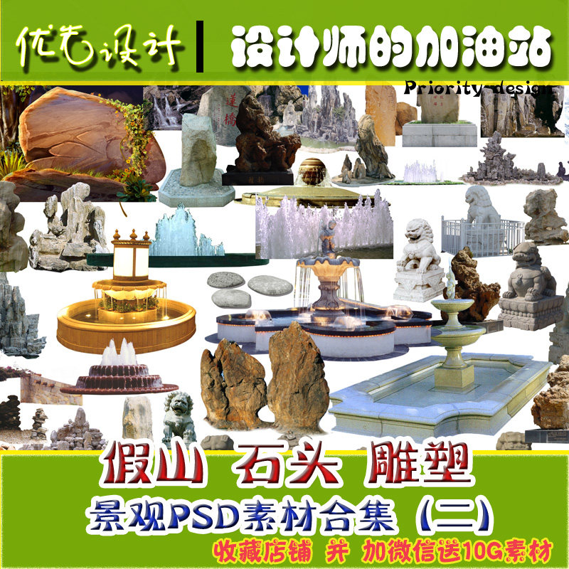 景觀園林假山石頭雕塑彩平素材PSD格式PS后期素材景觀效果圖YX242