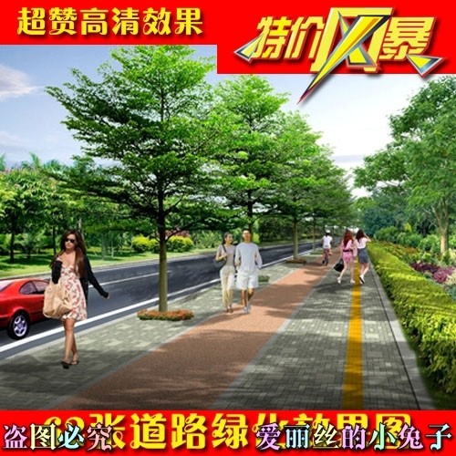 2018年新版園林景觀PS效果圖道路綠化設計PSD后期素材 植物人物