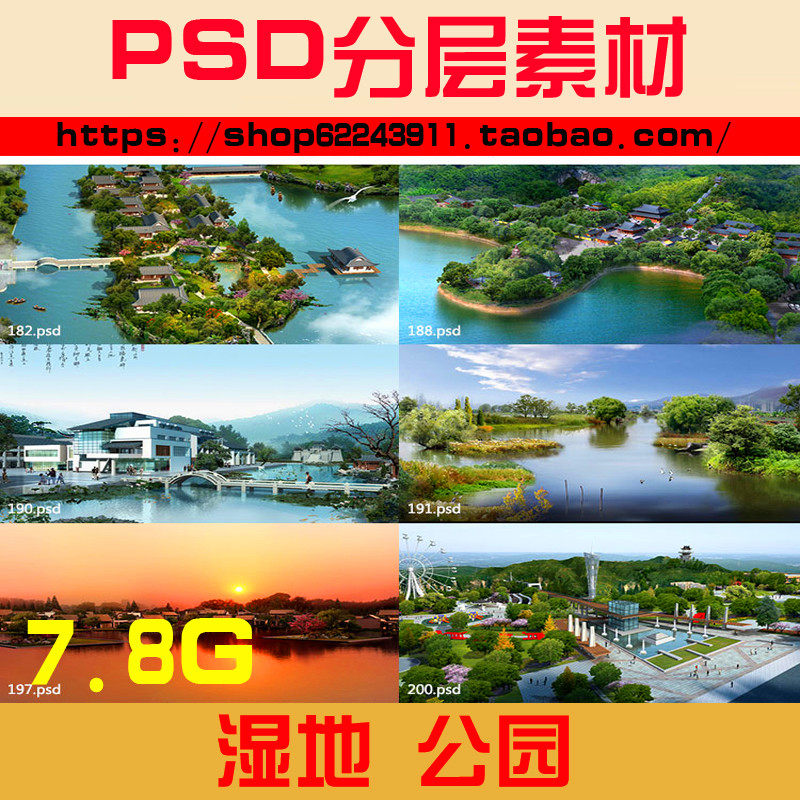 *濕地公園 廣場鳥瞰 園林景觀設計資料 PSD效果圖 設計PS素材