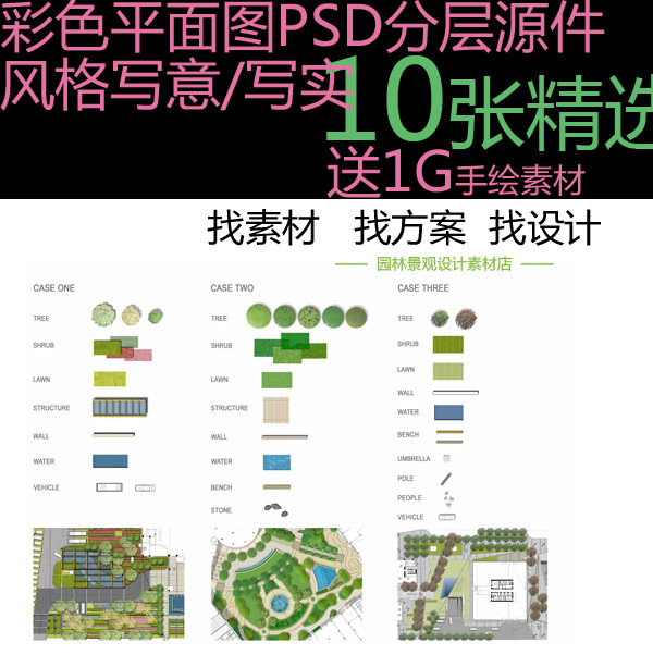 園林景觀彩平圖PSD分層素材手繪后期立面平面圖設計效果圖送1G