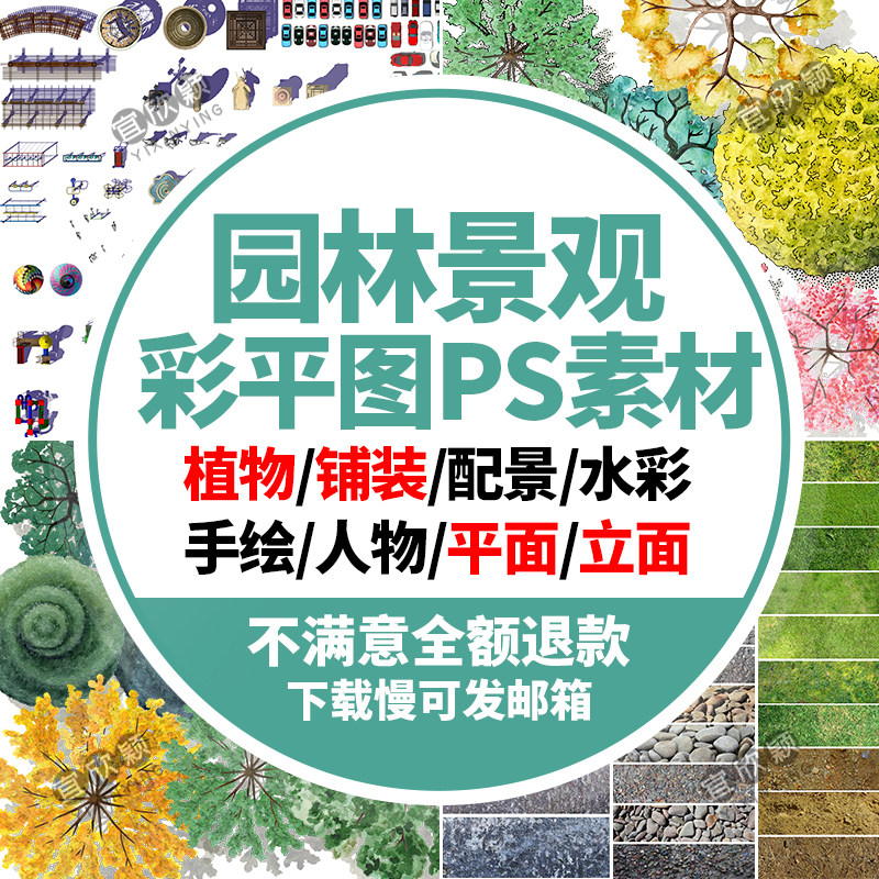 園林景觀彩平圖PSD素材植物手繪輔裝PS后期立面平面圖設(shè)計(jì)效果圖