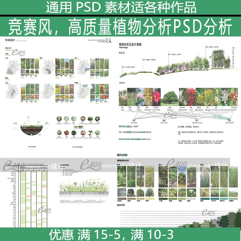 園林景觀ps植物配置分析圖psd素材競(jìng)賽風(fēng)前期分析效果圖剖面圖