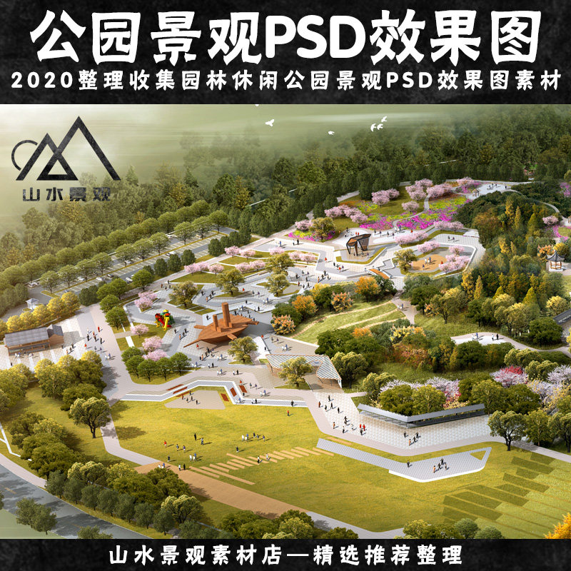 PS后期素材庫(kù)園林景觀設(shè)計(jì)PSD古建樹(shù)木花草植物人物鳥(niǎo)瞰圖效果圖