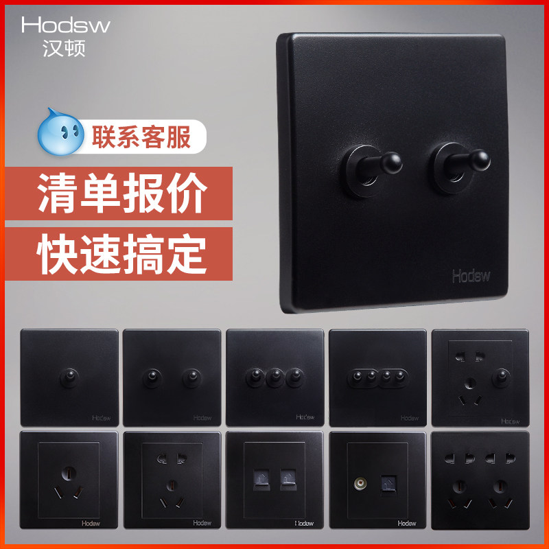 漢頓民宿酒店工裝家裝北歐工業(yè)風(fēng)BE黑色黑撥桿復(fù)古仿古老式多孔插