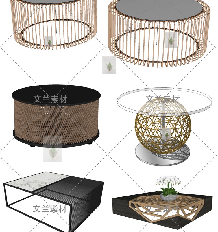 工裝家裝現(xiàn)代新中式風(fēng)格輕奢金屬茶幾擺件家具組件草圖大師SU模型