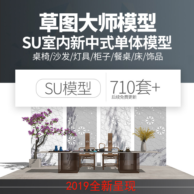 新中式家具su草圖大師sketchup模型室內(nèi)家裝工裝中式桌椅床燈素材