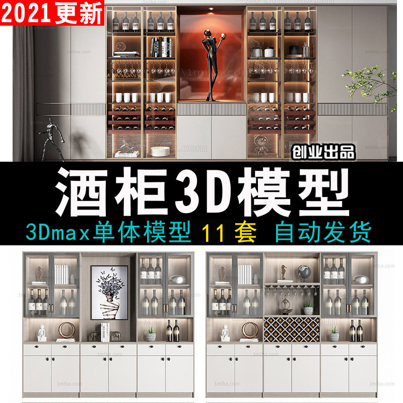 2021現(xiàn)代新中式輕奢酒柜3D模型展示柜子3Dmax源文件F019