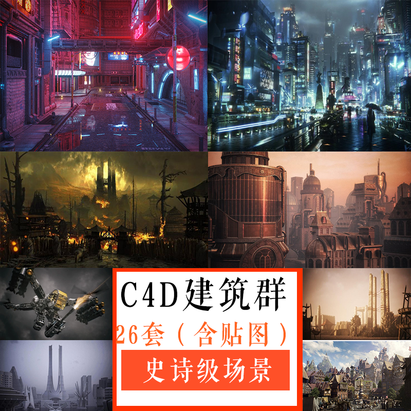 C4D場(chǎng)景模型建筑科幻oc渲染特效3D城市大型MAYA場(chǎng)景3Dmax街道素材