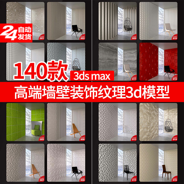 高端室內(nèi)工家裝修設(shè)計(jì)墻壁立體紋理3D模型3dsmax場(chǎng)景效果圖帶貼圖