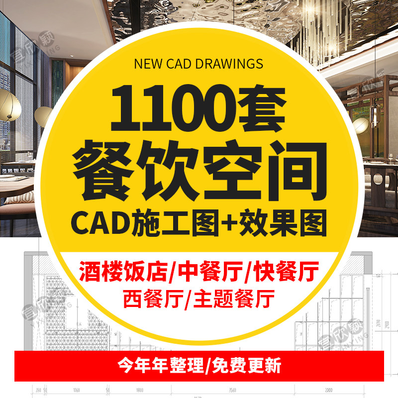 餐飲空間CAD施工圖3D效果圖平面西餐中式茶餐廳快餐飯店食堂素材