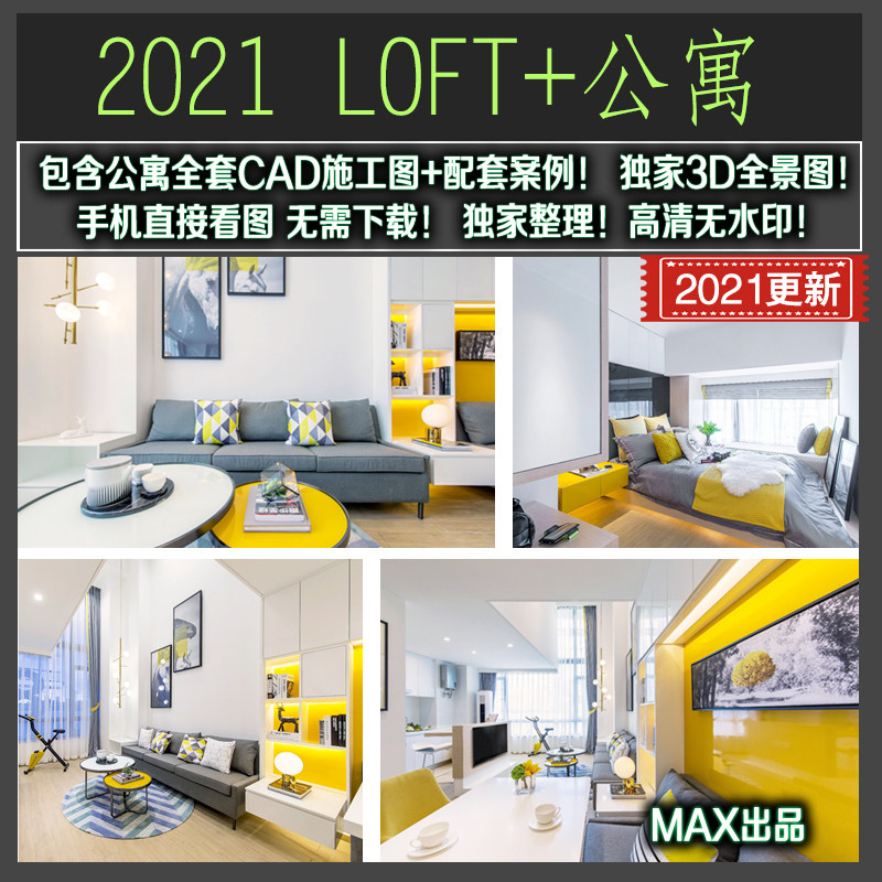 公寓LOFT裝修設(shè)計(jì)效果圖小戶型復(fù)式酒店單身公寓室內(nèi)CAD施工圖紙