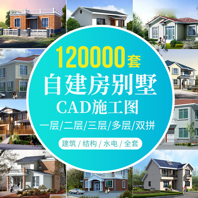 新農(nóng)村自建房設(shè)計(jì)圖紙一層二層三層建筑CAD施工圖建筑別墅效果圖