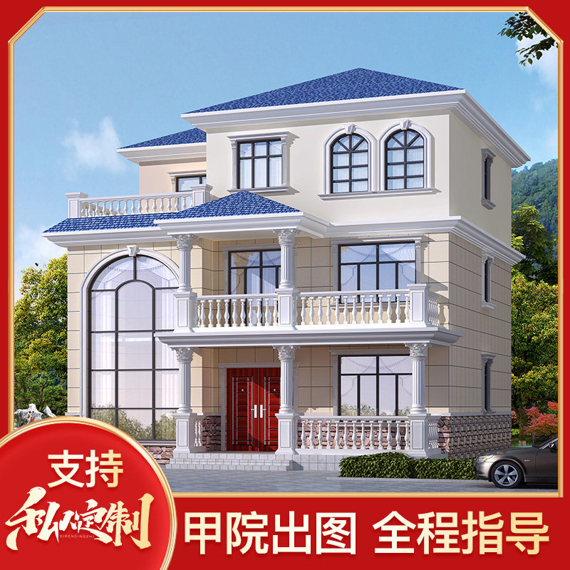 歐式兩層半三層農(nóng)村自建房設(shè)計(jì)小戶(hù)型復(fù)式別墅效果圖全套施工圖紙