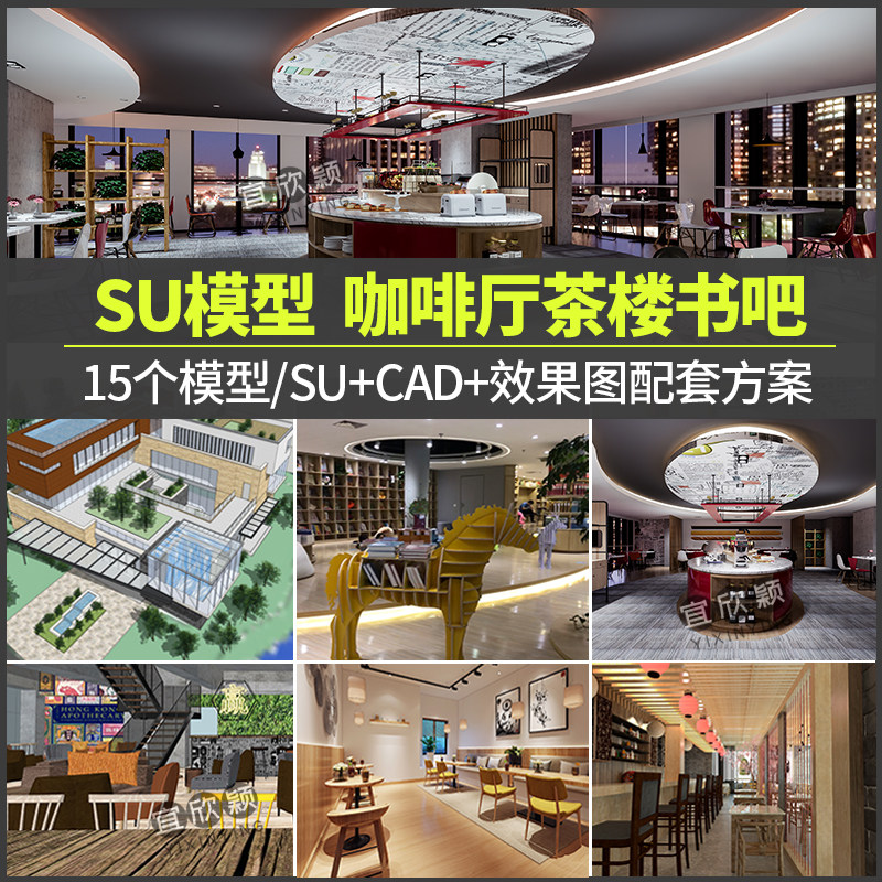 草圖大師民宿咖啡廳茶樓書吧書店SU模型cad施工圖餐廳方案設(shè)計