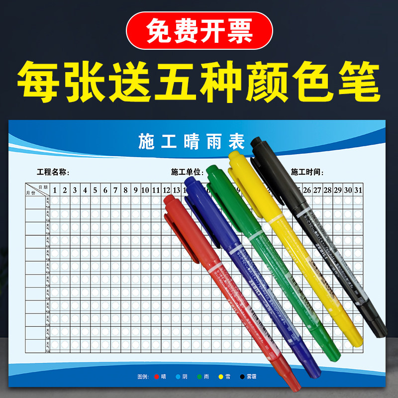 建筑工地施工晴雨表掛圖通用可擦貼紙工程項(xiàng)目進(jìn)度表天氣記錄海報(bào)
