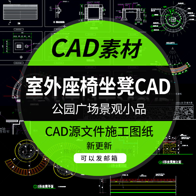 園林景觀小品室外戶外休閑座椅坐凳樹池CAD施工圖大樣圖剖面詳圖