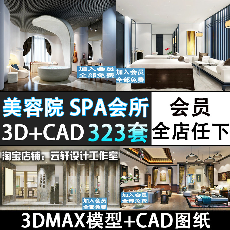M166-美容院spa會所3d室內(nèi)工裝3dmax模型配套CAD施工圖效果圖素材