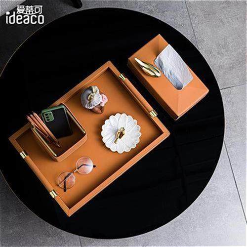 歐式復(fù)古皮質(zhì)長(zhǎng)方形家用托盤 創(chuàng)意C五星級(jí)酒店O樣板房間茶水杯收
