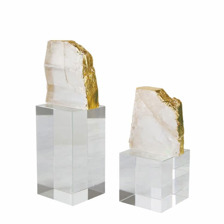 簡(jiǎn)約輕奢五星級(jí)豪華酒店 樣板房會(huì)所水晶底座 金箔石擺件 2019