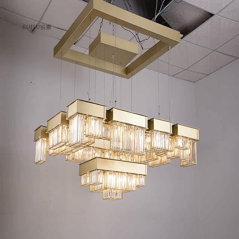 上海新中式酒店會所別墅樣板間售樓部大堂電鍍古銅水晶吊燈