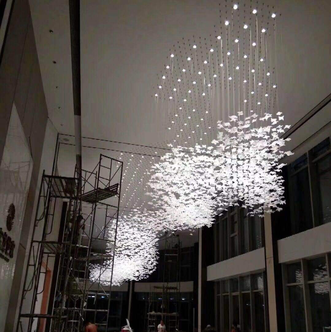 楓葉裝飾燈酒店會(huì)所大堂廳售樓部沙盤(pán)藝術(shù)吊燈大型復(fù)式樓中空玻璃