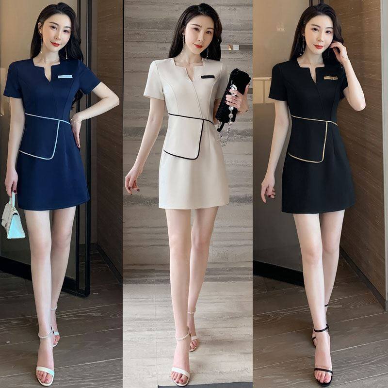 足浴桑拿工作服時尚春季新款按摩技師服SPA養(yǎng)生會所美容院連衣裙