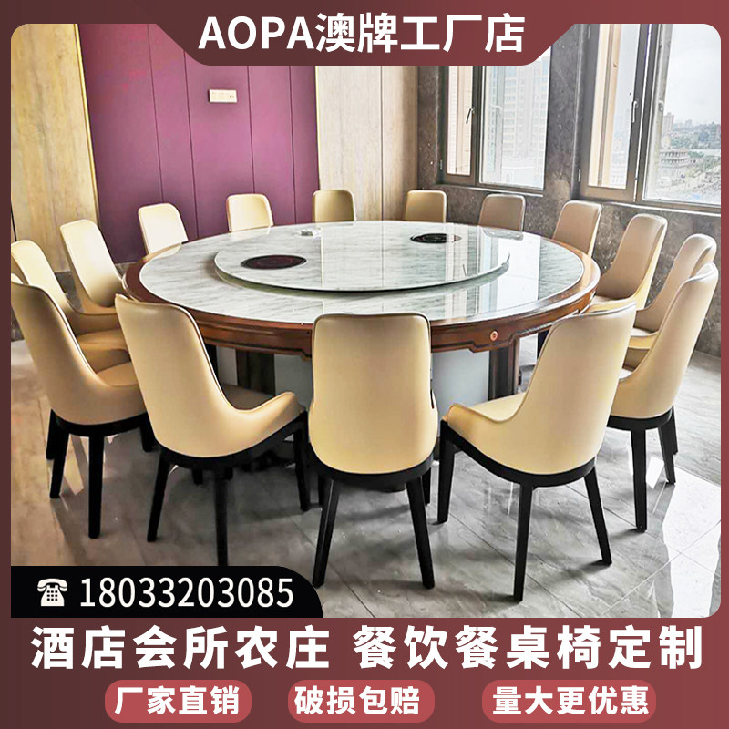 Z108火鍋餐桌酒店包間大圓桌電動餐桌會所飯店圓形餐桌椅組合