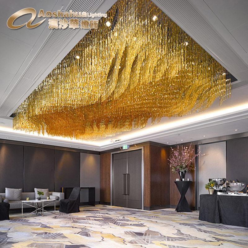 燈吸頂燈中山定制非標(biāo)工程燈酒店大堂會(huì)所燈具長(zhǎng)方形水晶
