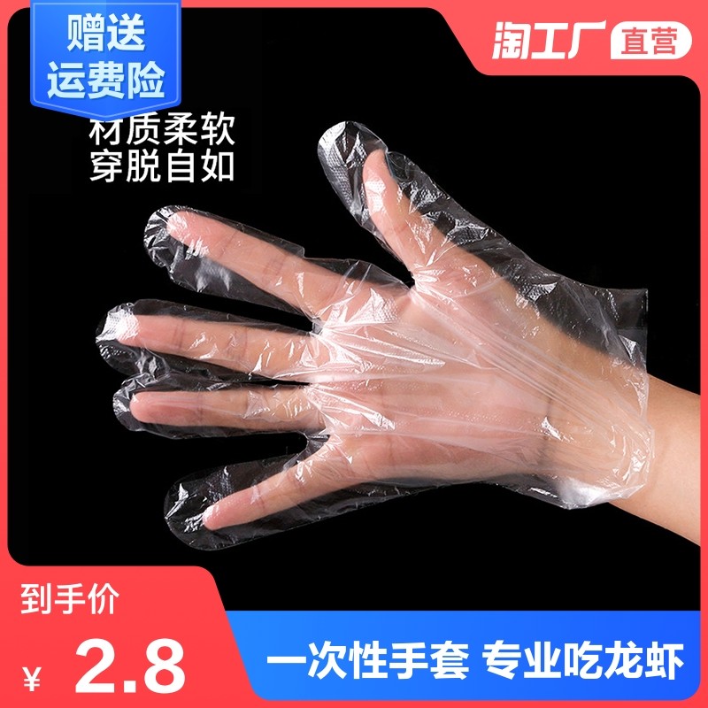 一次性手套 加厚餐飲食品吃小龍蝦透明塑料實驗手套pe食品級100只