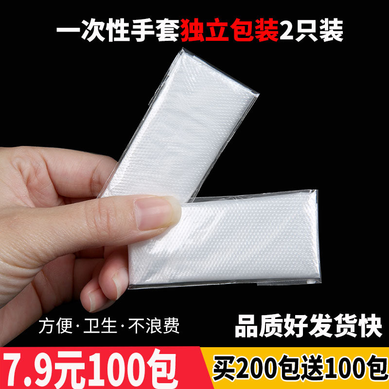 一次性單獨小包裝手套 2只/包 獨立包裝 食品級餐飲外賣裝加厚塑料透明無異味隔油
