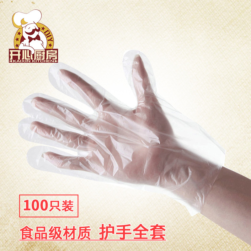 加厚一次性手套100只食品級 塑料PE薄膜透明廚房餐飲壽司手套
