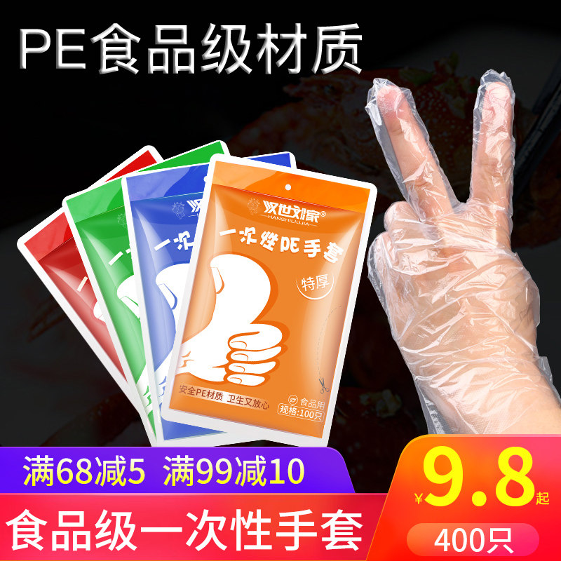一次性手套加厚耐用手膜食品級餐飲家用透明塑料PE薄膜手套吃龍蝦