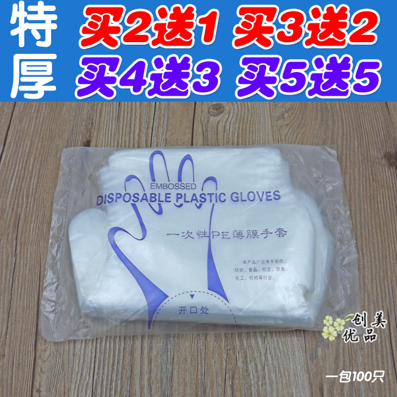 特加厚一次性手套食品餐飲透明塑料pe薄膜家用烘焙吃龍蝦100只裝