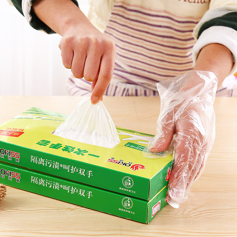 居家用透明一次性手套100只裝加厚食品級(jí)食用餐飲用塑料薄膜手套