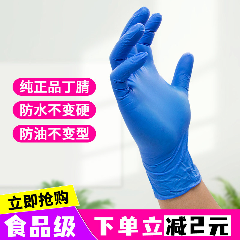 外出家用加厚防水一次性藍(lán)丁晴家務(wù)洗碗防水油餐飲賣菜肉橡膠手套