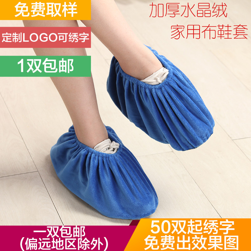 家用絨棉布鞋套加厚防滑耐用定制刺繡印logo售樓樣板房間早教中心