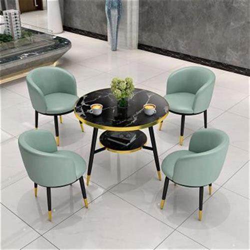 科技布休閑桌椅組合簡約洽談接待圓桌售樓中心V休息區(qū)會客桌椅