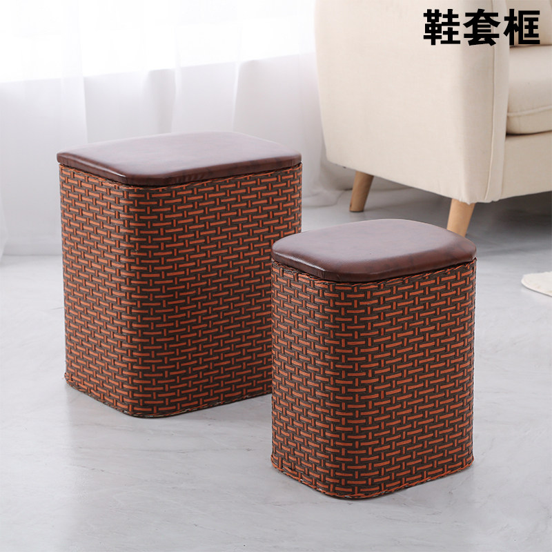 售樓部早教中心樣板房間布鞋套回收納筐放置籃的桶箱盒框竹簍方形