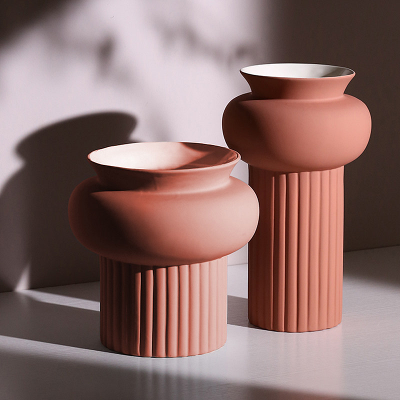陶紅色大肚陶瓷花瓶大黑件設(shè)計(jì)師樣板房間售樓中心軟裝飾品擺設(shè)
