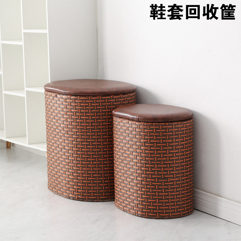樣板房間售樓部中心布鞋套回收框收納集籃放置桶箱筐竹簍橢圓形