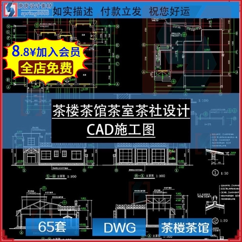 茶樓茶館茶室茶社CAD施工圖紙 建筑設(shè)計(jì)室內(nèi)平面立面剖面設(shè)計(jì)素材