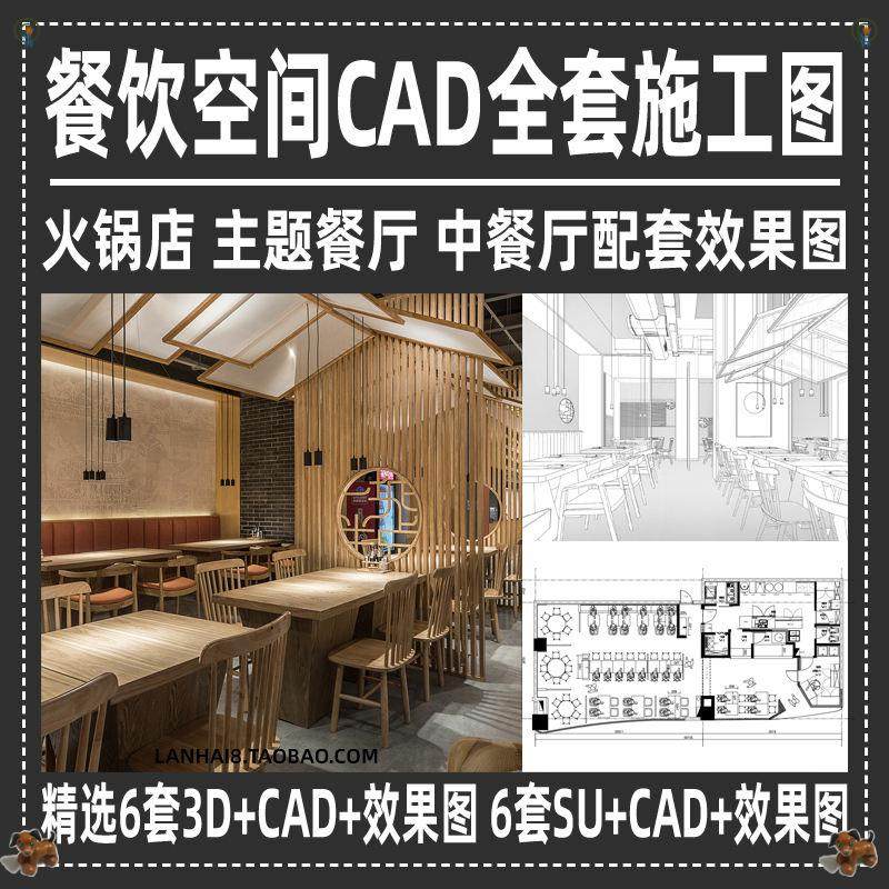 2020餐飲空間CAD全套施工圖效果圖+3D模型SU模型工裝室內(nèi)設(shè)計(jì)素材
