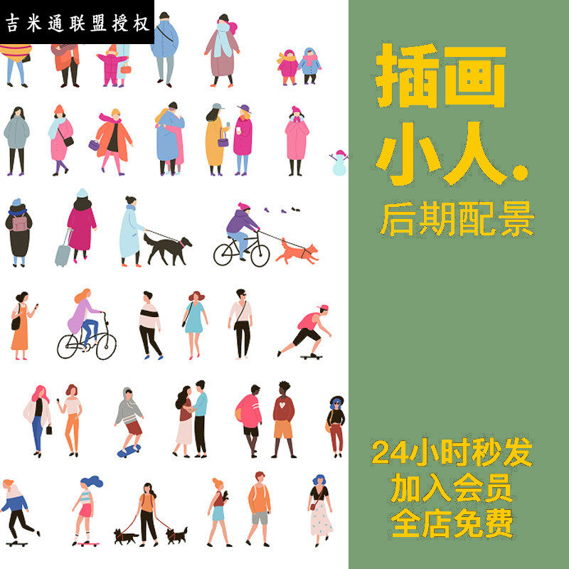 Q514插畫小人配景素材建筑園林景觀室內(nèi)后期人物AI矢量圖效果圖