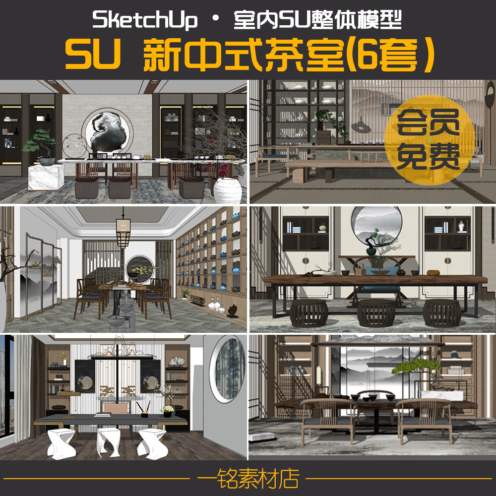 新中式茶室su泡茶禪意桌椅家具模型工裝室內(nèi)設(shè)計(jì)草圖大師素材庫(kù)