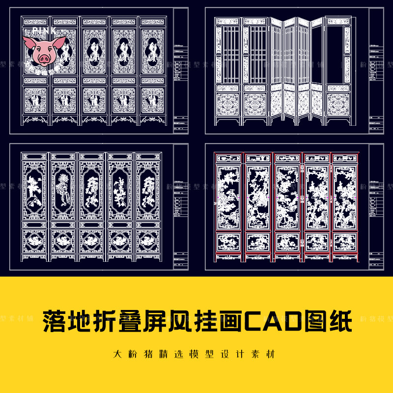 中式古典落地插屏折疊屏風(fēng)掛畫客廳室內(nèi)家裝飾CAD圖紙庫(kù)設(shè)計(jì)素材